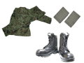 ◆迷彩戦闘服(ECリップストップ2型)・足ゴムバンド・楯桜長靴(戦闘長靴3型レプリカ)の3点セット!